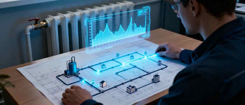 - Сбор исходных данных: Обычно этот этап занимает около 1–2 недель. Здесь собираются необходимые данные о потребителях, источниках тепла, климатических условиях, топографии местности и существующих коммуникациях.